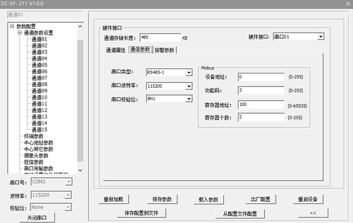 數(shù)據(jù)采集時間 | 采集時間間隔,按設(shè)置的時間間隔采集數(shù)據(jù)(0-65535s) |